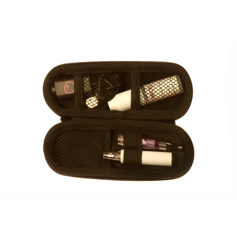 Il peut contenir une batterie 650 mah, une batterie 1100 mah, 2 clearomizeurs, 2 liquides, un chargeur USB EGO T, et un adaptateur secteur.